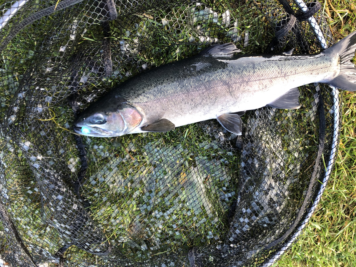 I set this again at 4 foot but I also put a size 12 silver vicar buzzer a foot under the indicator. After a few casts the indicator disappeared and I was into fish number 4 this time it had taken the buzzer. This fish was a lovely long lean fish with a great tail. I managed another 2 fish both falling to the MM before I decided on having a move.