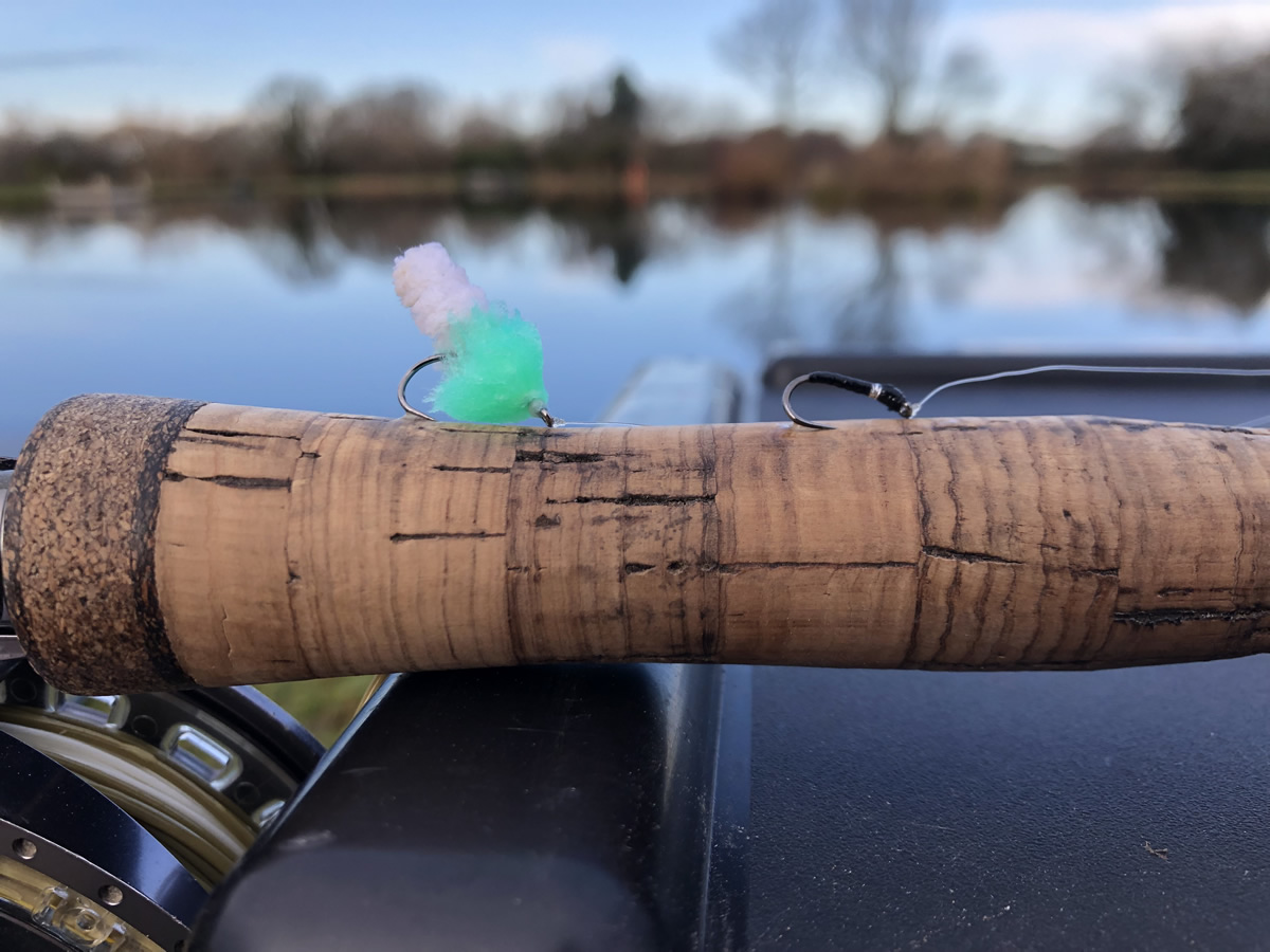 I am lucky to live only a few minutes from the very picturesque Tan-Y-Mynydd. I had some amazing evenings in the summer fishing dry flies into the dark. This was my first visit of the winter I only had a couple of hours but I couldn’t of picked a better day for it. A cold morning with blue skies and sun and a light breeze perfect winter conditions. A very warm welcome from Martin and some top tips on what spots were fishing well. Its always good to speak with rangers or owners when arriving at the fishery to get the most up to date information on what’s currently working. Tan-Y-Mynydd is spring fed and the water is crystal clear with a healthy amount of weed and depths to about 14 feet. I decided to start on top lake and I had set 2 rods up, The loop 7 X 10 foot for 7 with the Airflo Superflo floater and the indicator and a Mojito Egg set at 4-foot leader, choice was Airflo G3 6lb. The other Rod was the Ariflo Super Stik 2, 10 foot for 7 on this I set up a fast glass and my new favourite small water fly the Olive red tag worm, leader choice was again Airflo G3 6lb.