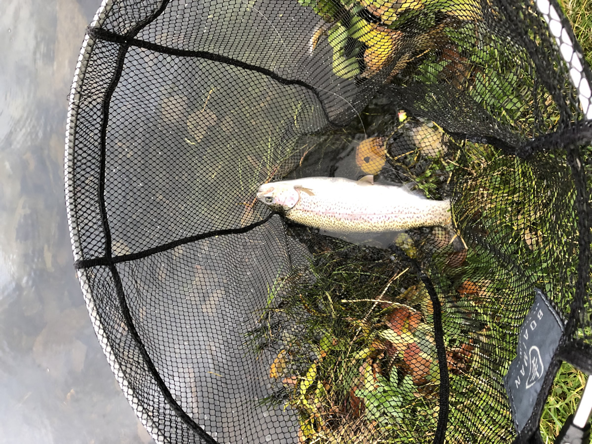 The afternoon was not going to plan the sun was shining and people had stopped catching time for a rethink. I decided to put a candy split blob on the point and a size 12 silver collar vicar on the dropper on the slow glass. The wind was pushing straight into my face and making turn over hard but by shorting my cast and making sure I hit the reel I was able to get the turnover I wanted. Fishing extremely slow I got my first lock up a nice-looking rainbow on the buzzer. Over the next 20 mins I managed another 5 rainbows all on the candy split blob I also lost and missed a few more.